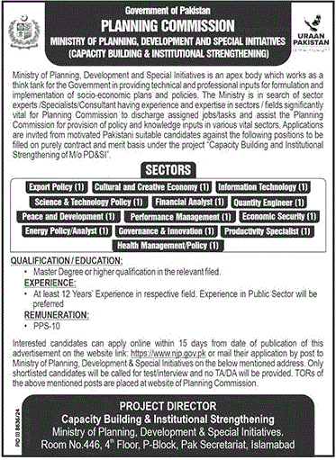 The Planning Commission of Pakistan handles national development strategies long term economic planning research funding analysis and policy recommendations. It works directly under the Ministry of Planning Development and Special Initiatives. This makes every job under this department highly important and suitable for candidates with strong academic backgrounds and analytical minds.